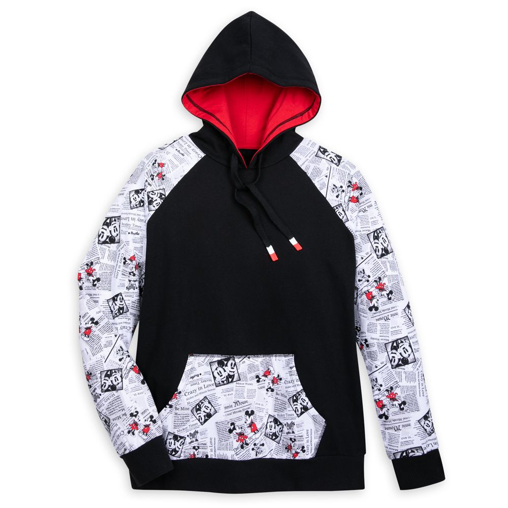 Mickey and Minnie Mouse Newsprint Pullover Hoodie for Adults was released today