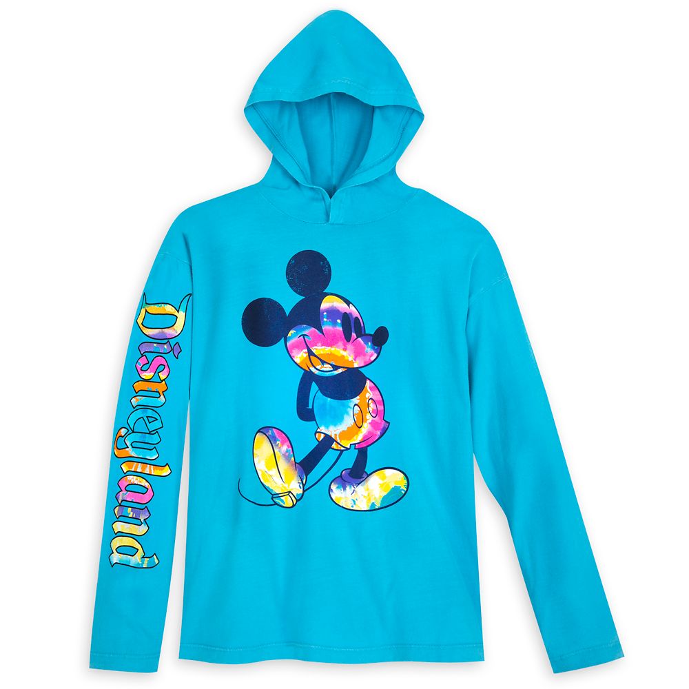 Mickey Mouse’s classic pose will keep them looking cool all year long in this lightweight hooded pullover with rainbow ”tie-dye” character print and Disneyland logo on sleeve.