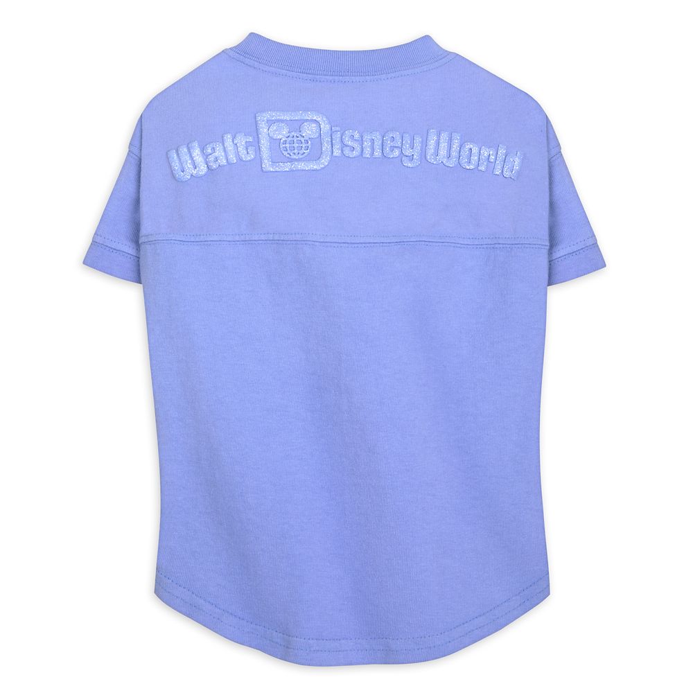 Coordinate your outfit with your fashionable four-legged friend when they wear this Walt Disney World Spirit Jersey for dogs. Available in different sizes, the hydrangea-colored cotton top features glittering puff ink lettering.