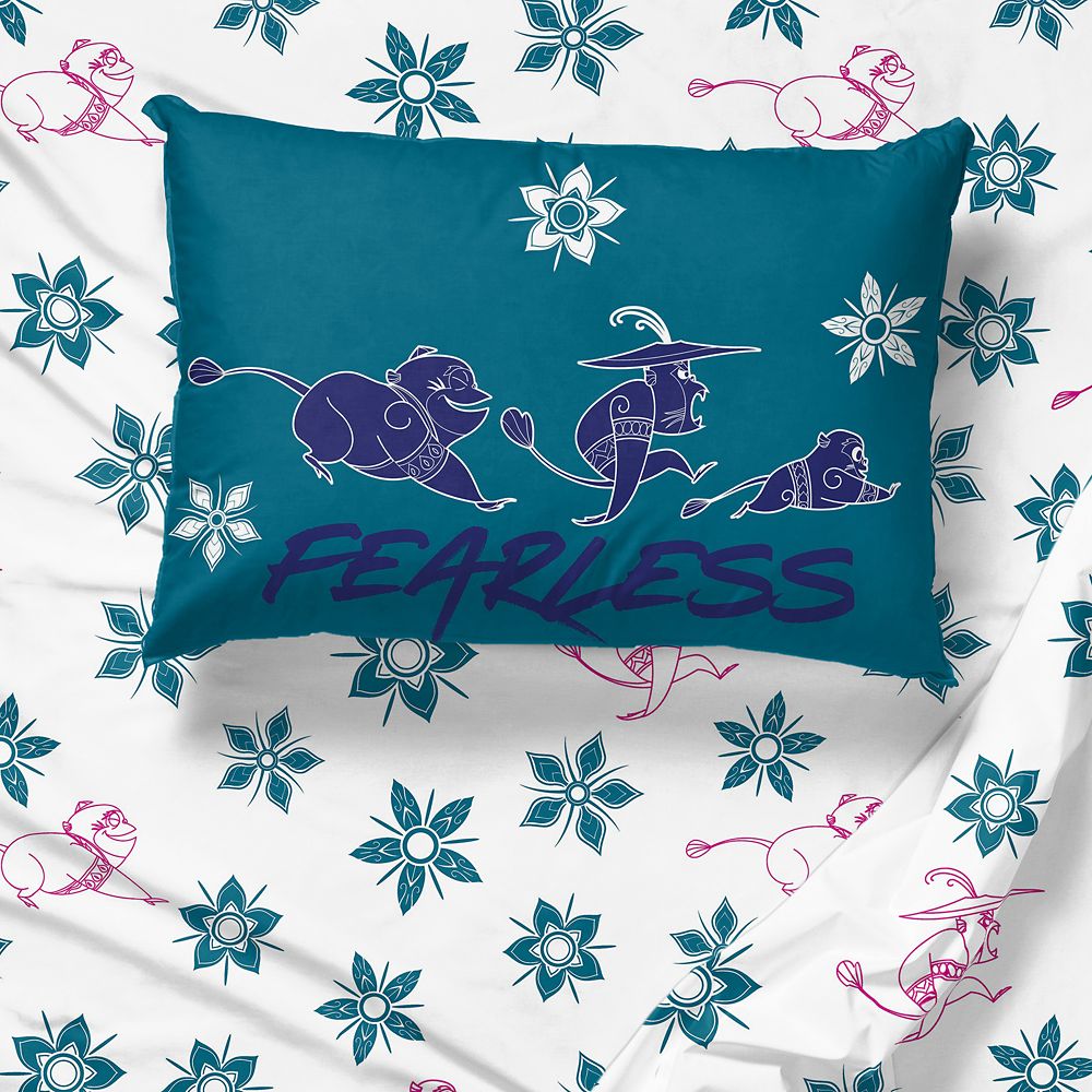 • Teal pillowcase features Ongis along with”Fearless,” ”Fill the World with Light” appears on back