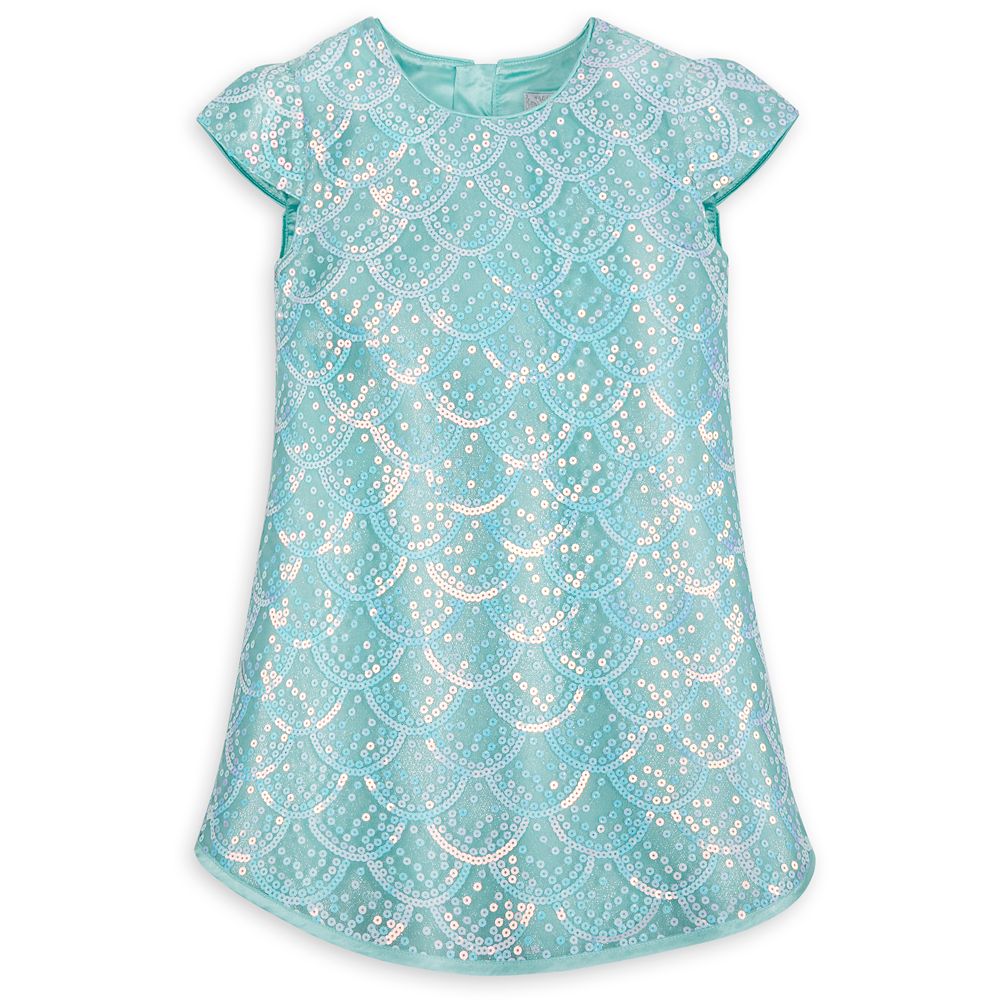 Make a splash in this fancy dress inspired by the little mermaid herself, Ariel! Iridescent sequins highlight an allover scale pattern that catches the light and provides a sea of smiles wherever you go.
