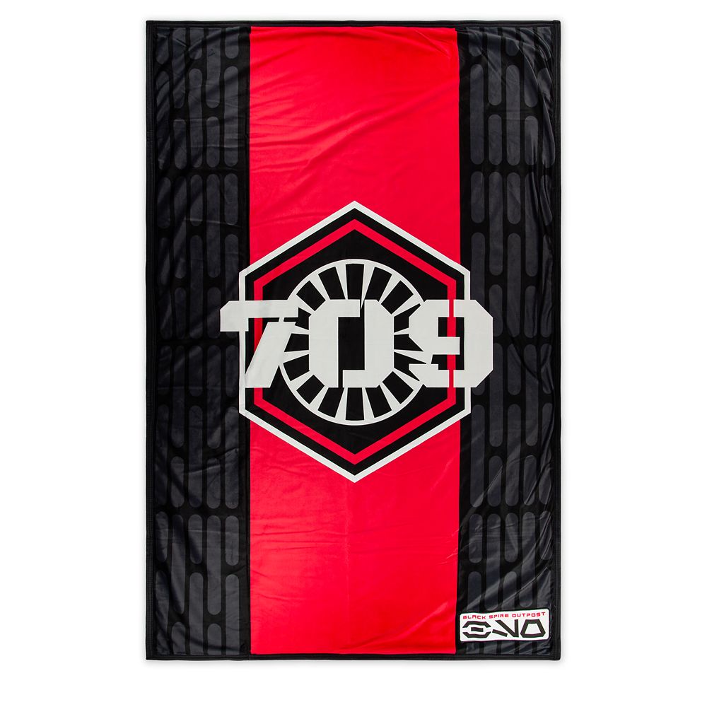 When off-duty, members of the First Order’s 709th Stormtrooper like to cozy up under a soft throw. Now you can feel like an elite soldier on Batuu with this blanket bearing the symbol of the 709th and the Aurebesh lettering for ”BSO” as well as ”Black Spire Outpost” text.