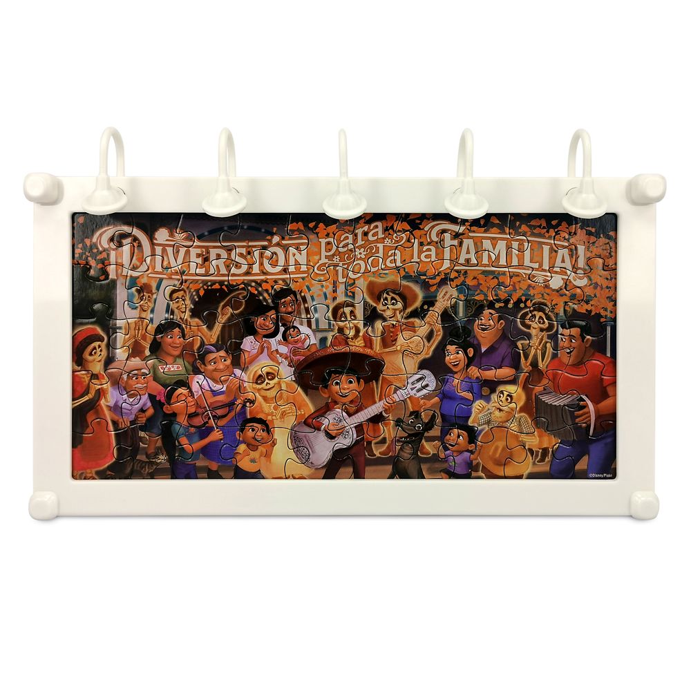 Light-up your living room with our Pixar Pier-inspired décor! Assemble the 50-piece Coco-themed puzzle in a tray that slides into the easel-back display frame. The overhanging lights will make you feel like you’re strolling through Disney California Adventure. ”Diversión para todo la familia!”