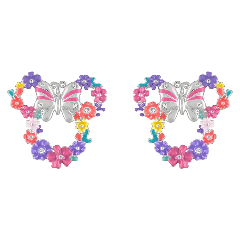 You’ll blossom whenever you wear these pretty Minnie Mouse earrings by Rebecca Hook. Crafted in sterling silver, they feature a Minnie icon outlined in colorful enamel flowers accented with sparkling cubic zirconia and a beautiful butterfly bow.