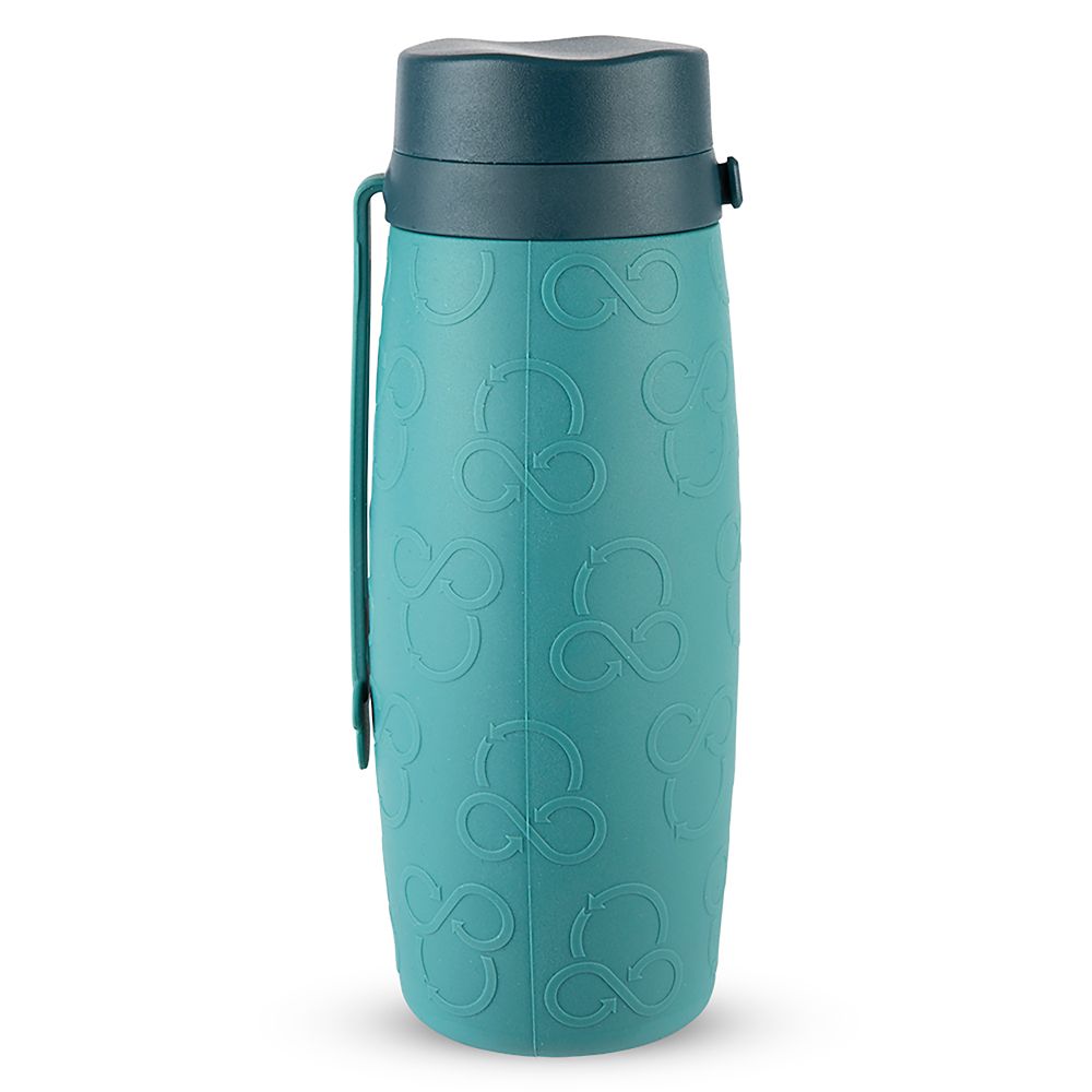 Be ready to roll with this easy to stow flexible silicone water bottle. Covered in raised Mickey ”Repeatables” icons, this reusable water bottle features a strap and tab that allows you to roll it up when not in use.