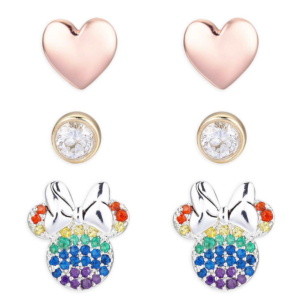 This set offers so Minnie ways to accent your ears! The Minnie Mouse icon studs are encrusted with rainbow cubic zirconia for a colorfully fun look. The cubic zirconia bezel set is chic and sparkly. And the rose goldtone hearts are simply sweet-as-can-be.