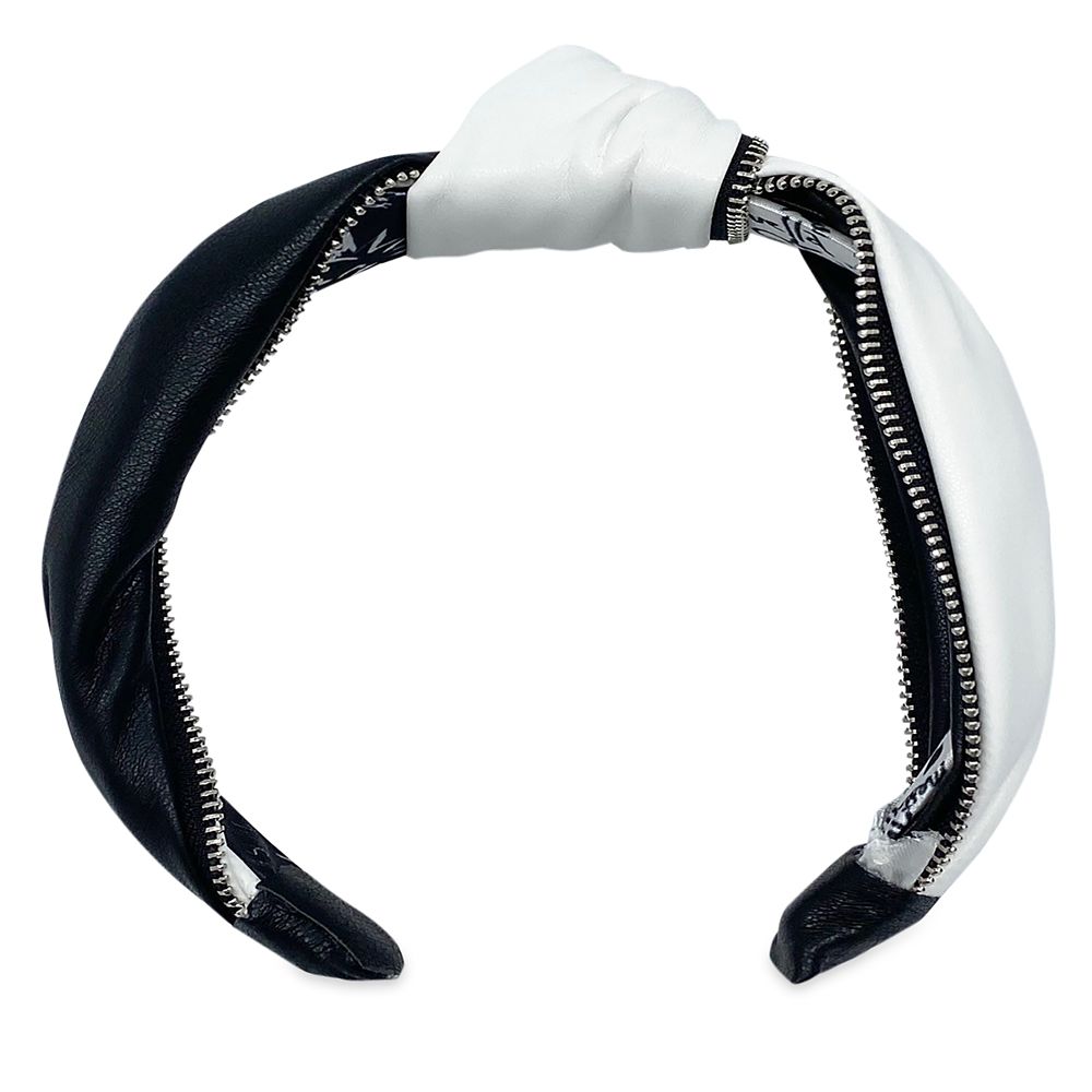 Rebel against everyday fashion in this thrilling, knotted two-tone simulated leather headband with zipper trim, part of your retro punk look inspired by Disney’s live action film, Cruella.