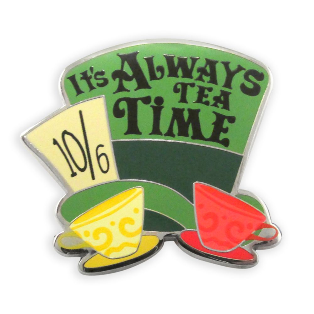 ”It’s always tea time” when you’re displaying this colorful cloisonné pin of the Mad Hatter’s timeless topper and teacups. It’s the ultimate Un-Birthday gift from Wonderland.