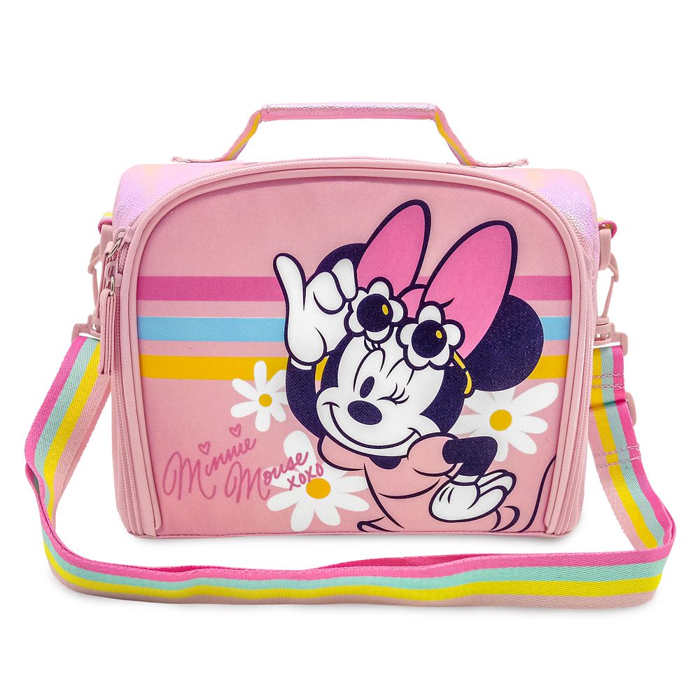 Minnie Mouse brings colorful style and structured storage to our so-sweet lunch tote. The front features our first lady of fashion giving a knowing wink, while the rainbow details and removable shoulder strap make this insulated tote a delightful lunchtime accessory.