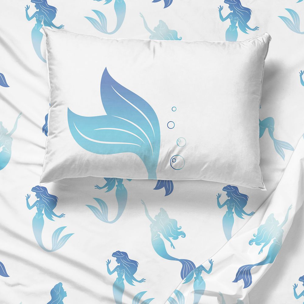 • Pillowcase features blue Ariel torso with ”make a splash” text on front and tail and bubbles on back