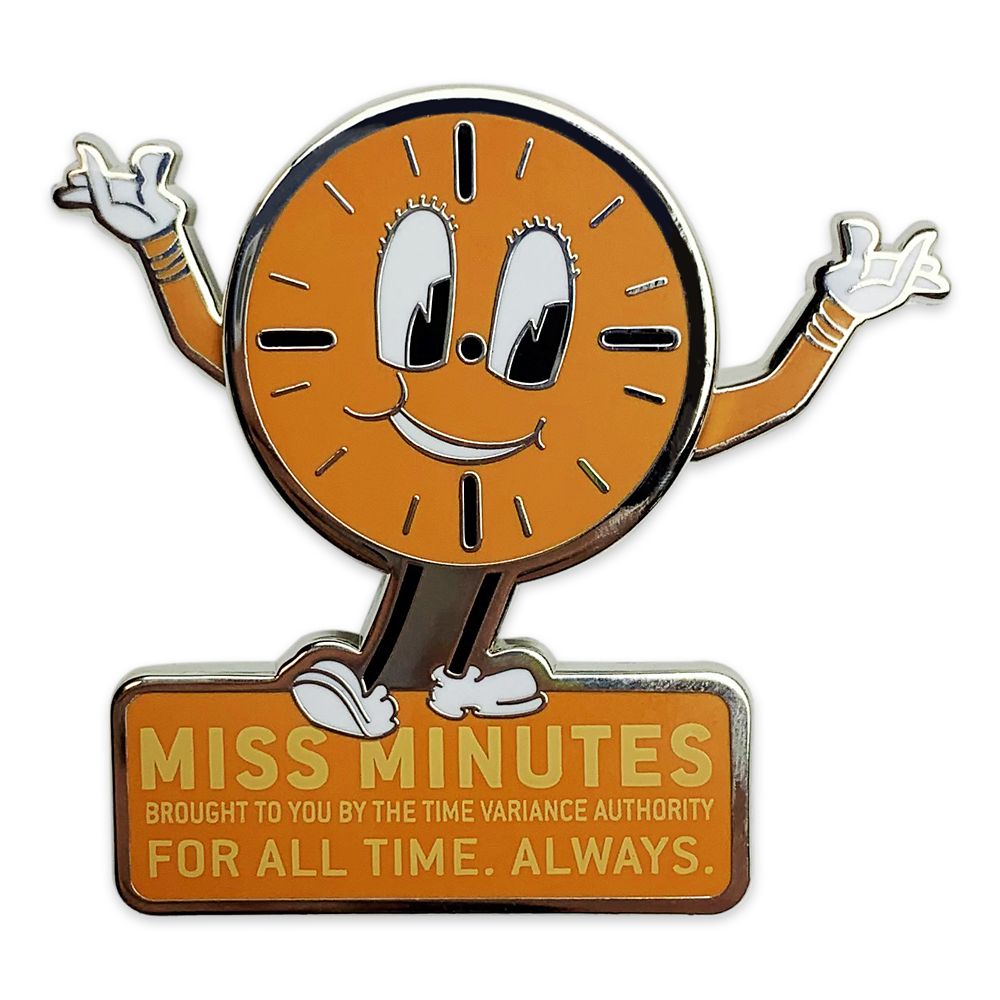 Take a moment to admire Miss Minutes from the new Disney+ series Loki. The mascot of the Time Variance Authority, she’ll make a timeless addition to your pin collection.