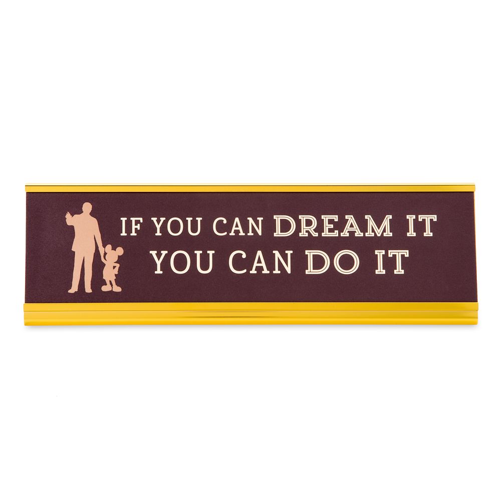 Legendary ”partners” Walt Disney and Mickey Mouse offer you daily inspiration on this metal, desk nameplate that features the duo pointing to the future alongside the words, ”If you can dream it you can do it.”