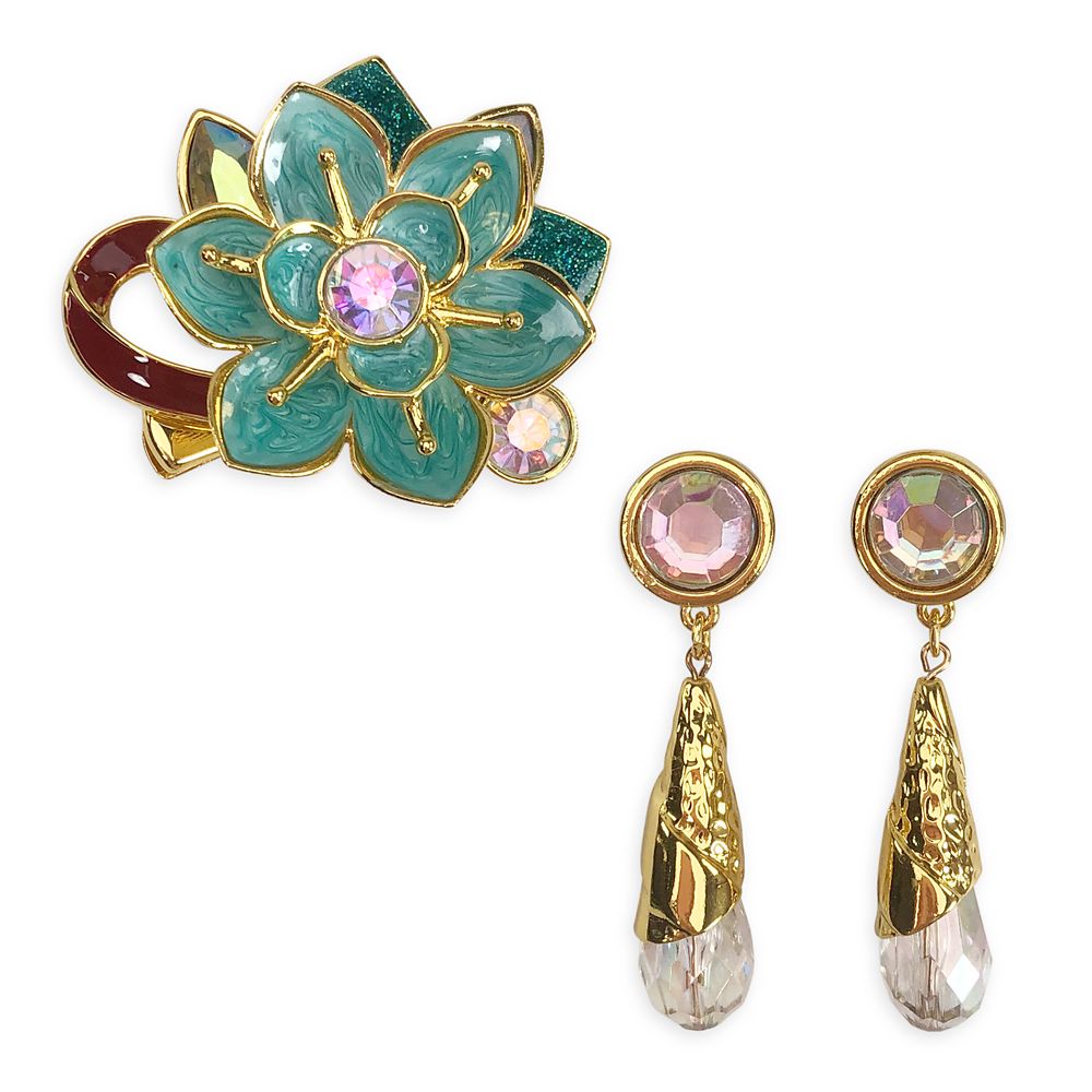 Bring honor to your outfit with this jeweled accessory set designed to complement our Mulan costume collection. A golden floral hair fixture with glitter and faceted gems is matched by a pair of glamorous drop earrings.