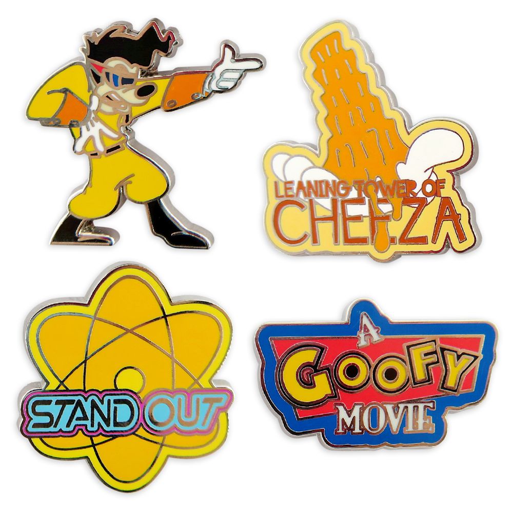 Stand out among pin collectors with this set of four pins inspired by A Goofy Movie, including pop star Powerline and the film’s logo.