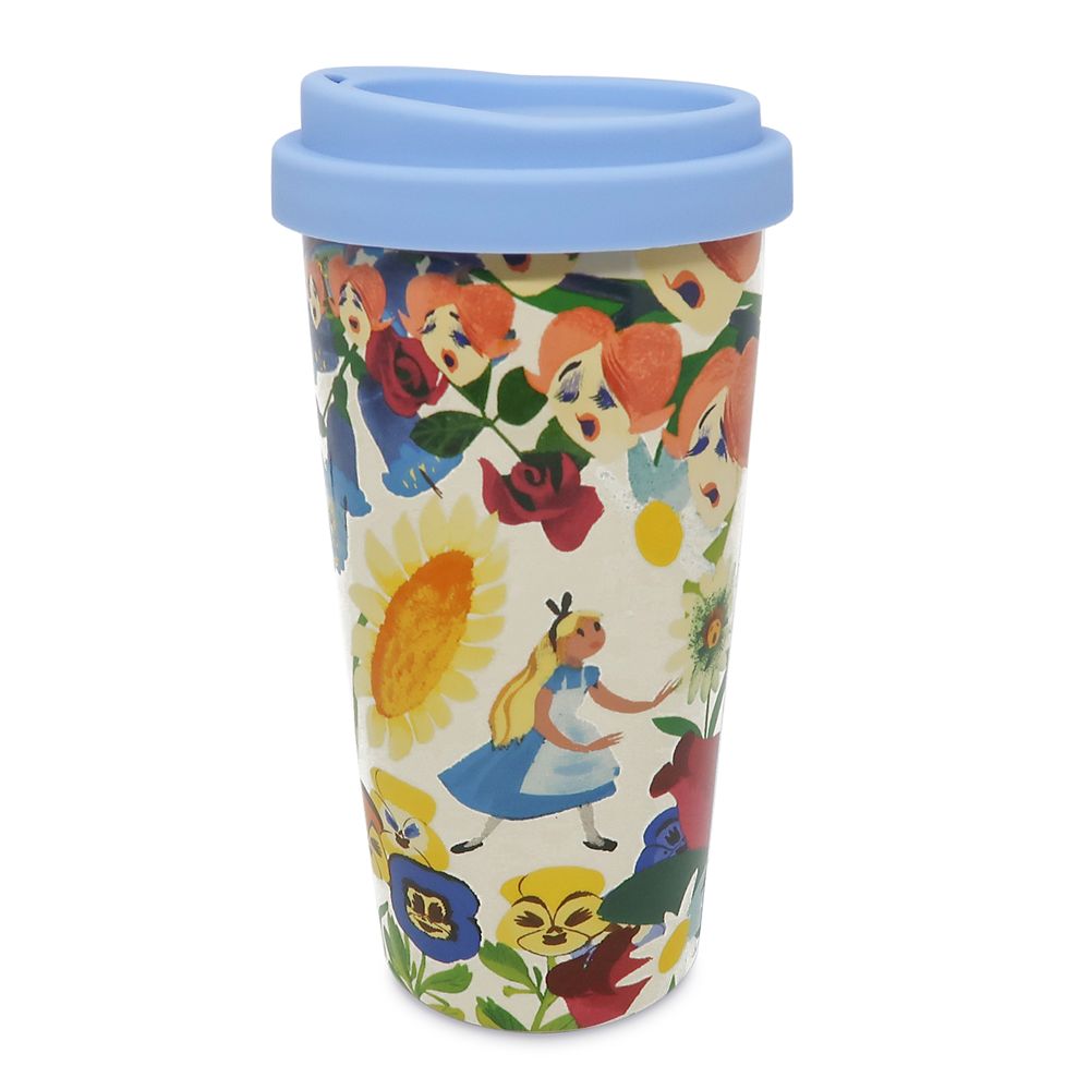 While daydreaming over a cup of hot chocolate, or when late for an important coffee date, this Alice in Wonderland ceramic travel mug with silicone sipper lid will always suggest, ”Drink Me.” Design adapted from inspirational art for Alice in Wonderland by Disney Legend Mary Blair.