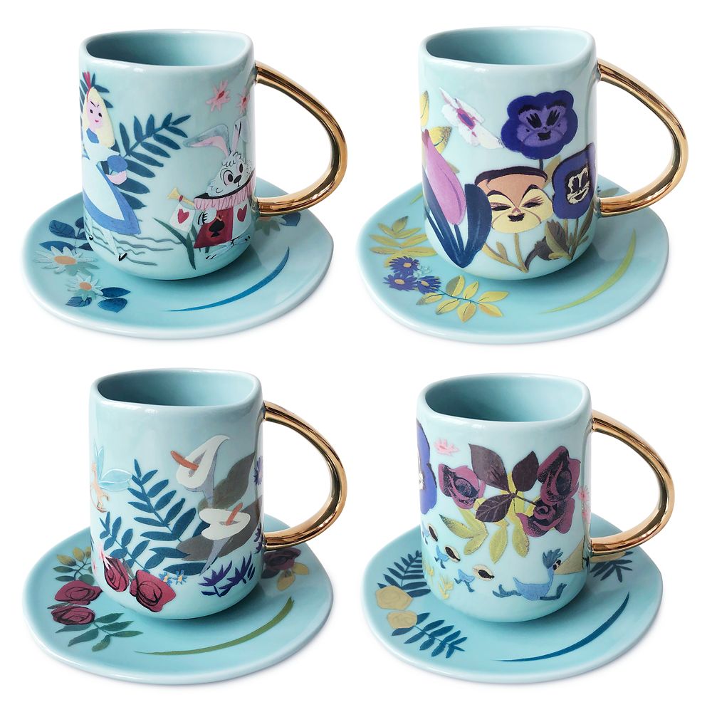 Every day is a Golden Afternoon when sipping a spot of tea from this set of four porcelain teacups with matched saucers featuring Alice and the Garden of Live Flowers. Designs adapted from inspirational art for Alice in Wonderland by Disney Legend Mary Blair.