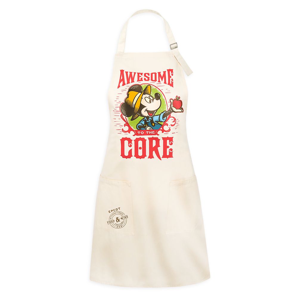 Mickey is sure to be the apple of your eye when he helps you out in the kitchen. Looking ”Awesome to the core,” he’s pictured on the front of this apron, a practical and perfect souvenir of the Epcot International Food & Wine Festival 2021.