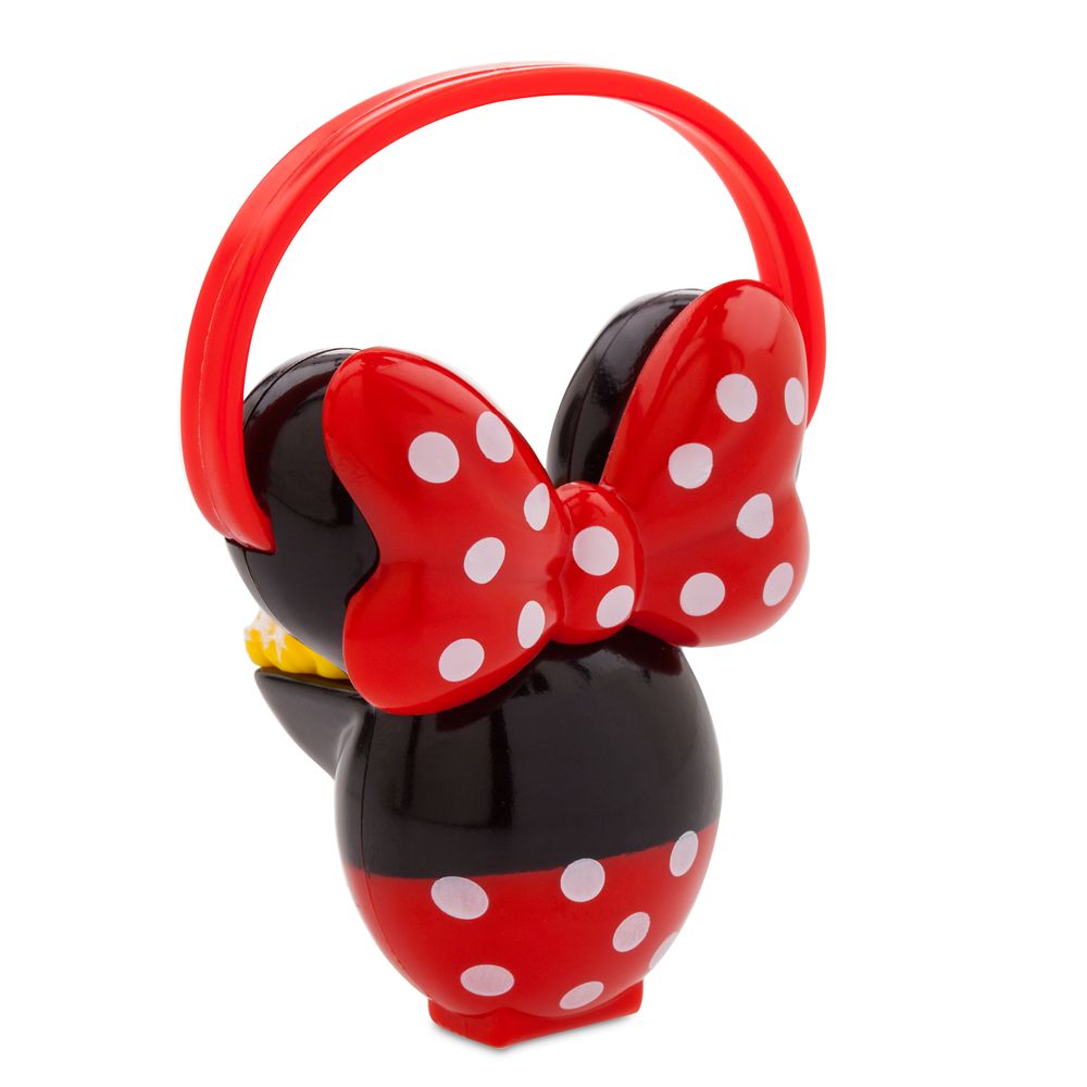 - Molded plastic Minnie Mouse popcorn bucket with handle as seen at Walt Disney World Resort