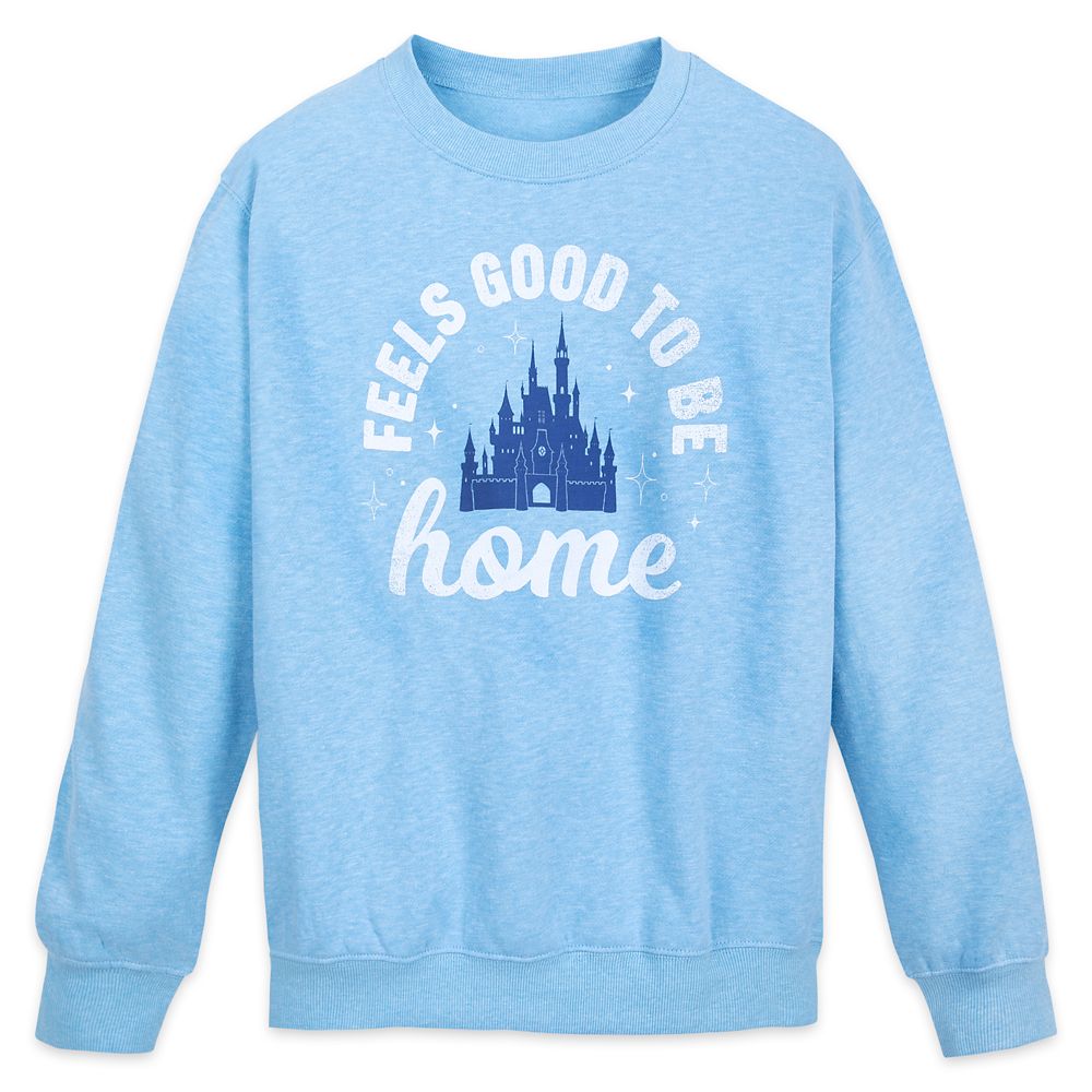It ”feels good to be home” while cuddling-up in this cozy pullover sweatshirt with Cinderella Castle graphics that will bring back warm memories of your Walt Disney World visit.