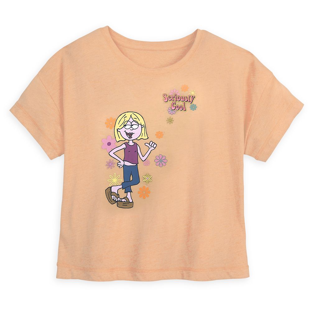 You’ll look ”seriously cool” in this retro-vibe fashion tee with a boxy silhouette, semi-cropped hem, and throwback Lizzie McGuire design.