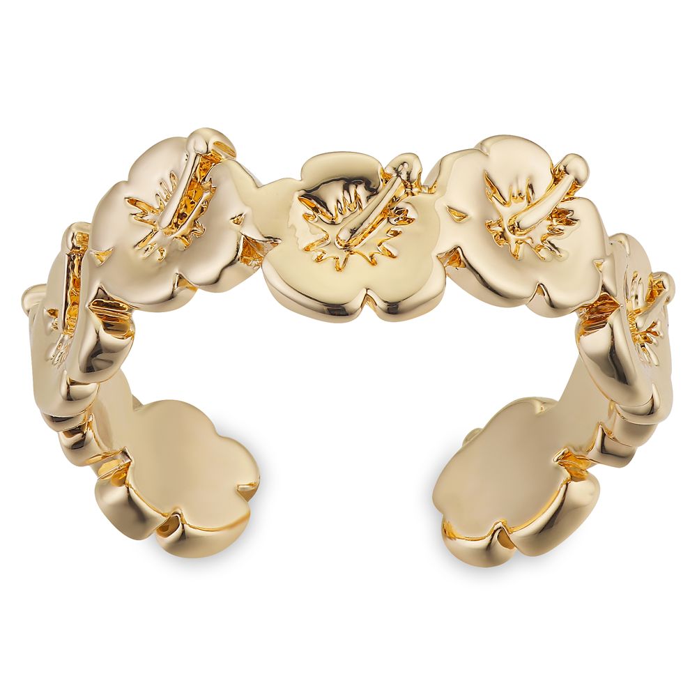 Happy memories of Disney’s Lilo & Stitch will always be on hand with this  ring. The goldtone design features linked hibiscus flowers with an adjustable open back making it a perfect fit, in every sense, for Lilo & Stitch fans.