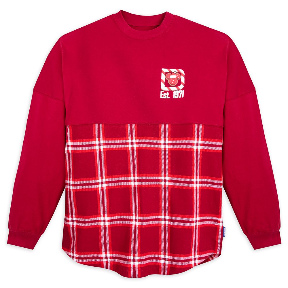 Wrap yourself in this soft Spirit Jersey with puffy Walt Disney World logo across back and sleeves. It’s illustrated in a holiday cookie and candy motif and its plaid print stirs feelings of home and the warmth of nostalgia.” />
