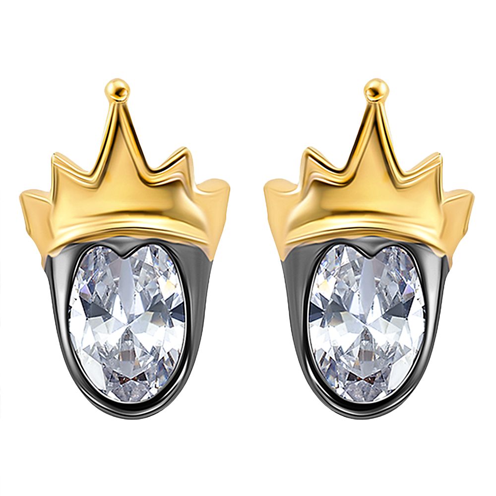 You won’t need a mirror to tell you who’s the fairest of them all when wearing these earrings inspired by the Evil Queen from Disney’s original fairytale. Created by CRISLU, they feature cubic zirconia stones as the Wicked Queen’s face, a black rhodium finish, and topped with her iconic crown in 18k yellow gold.” />