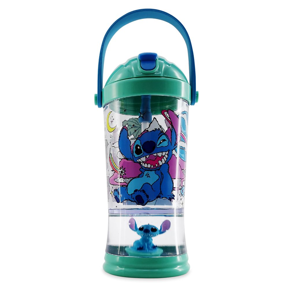 Blast-off with a tank of liquid refreshment stored in Stitch’s cool canteen. This out-of-this world, no-spill cup has a character ”snowglobe” built right into the base for a sip of sparkling fun throughout the day.” />