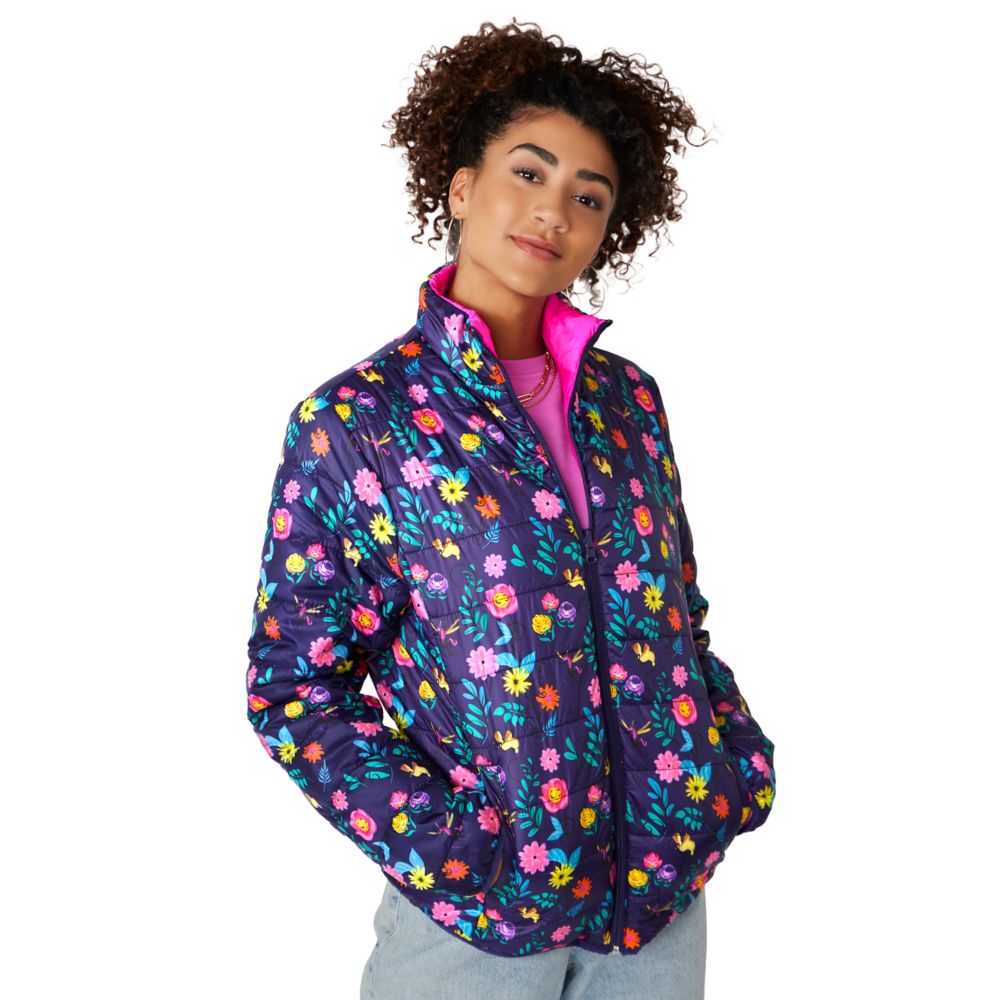 Stuff and nonsense will brighten your gray days and nights with our reversible puffy jacket featuring Wonderland’s Garden of Live Flowers. Soft, quilted fill and floral print pattern makes every winter day feel like a Golden Afternoon of summer.