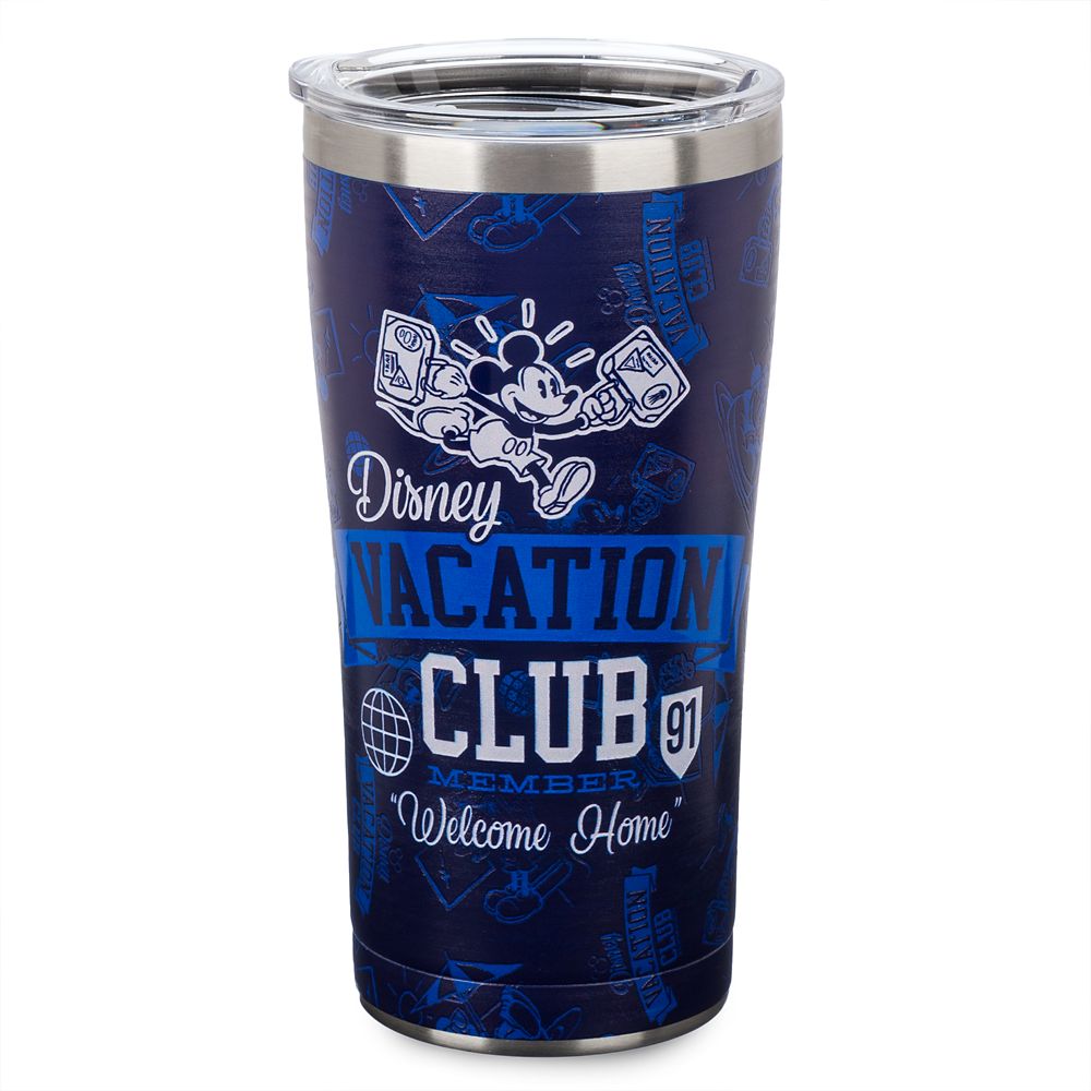 With his bags all packed, Mickey rushes off to his next Disney Vacation Club trip. The happy holidaymaker is featured on this stainless steel travel tumbler that offers a warm ”Welcome home” to DVC members who have been enjoying magical vacations since 1991.