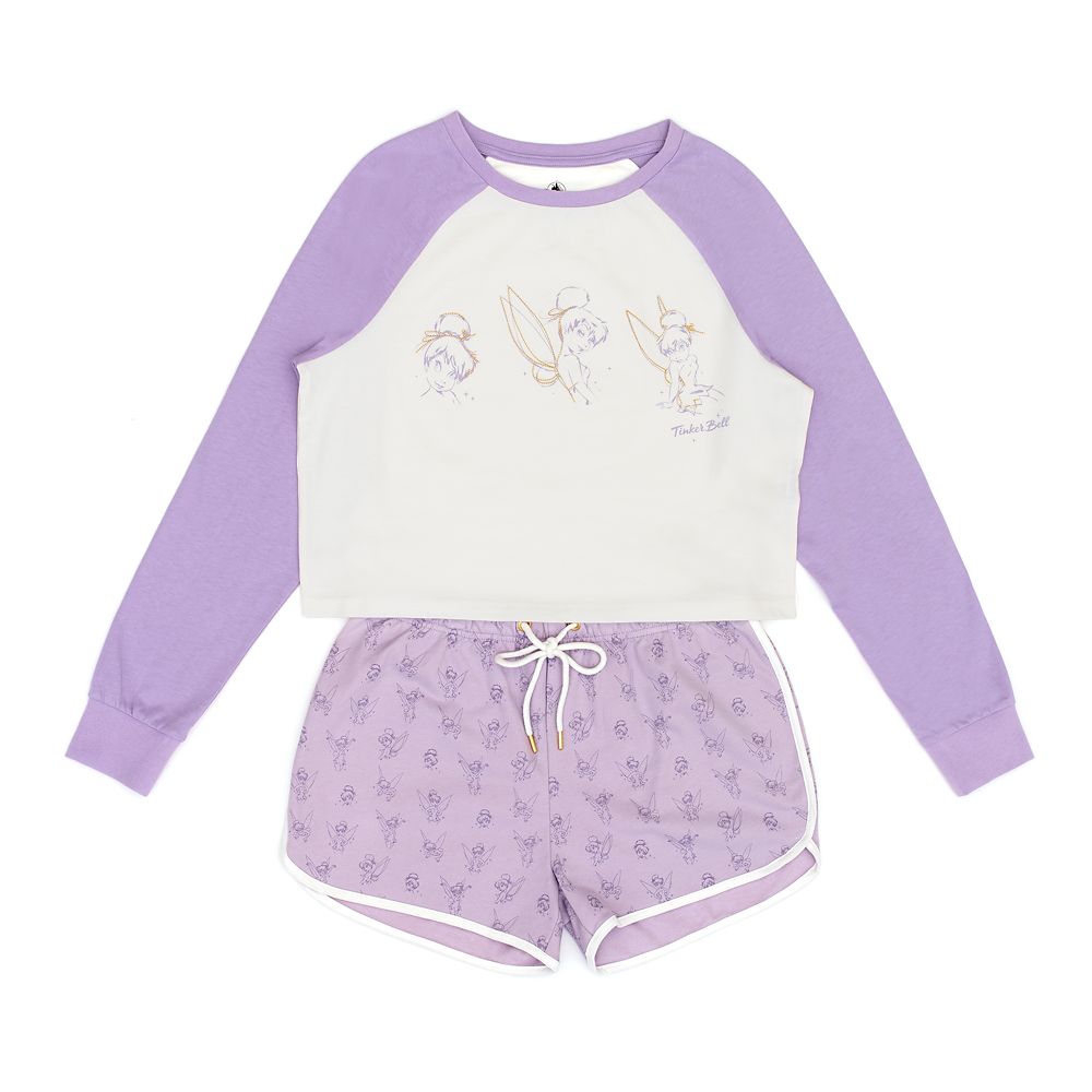 Enjoy flitterific dreams when you fly off to bed in these comfy Tinker Bell-inspired pajamas. The raglan sleeve top features sketch art of our favorite fairy and the coordinating shorts have an allover pattern.