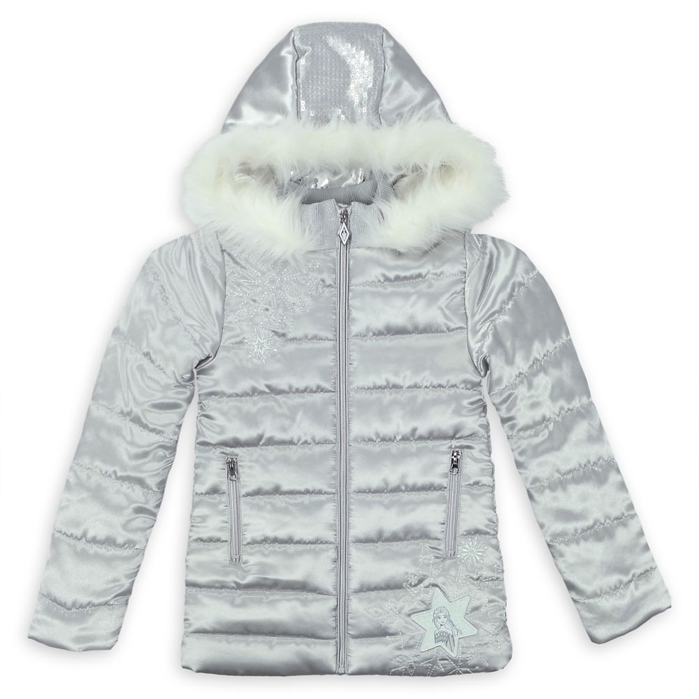 Eternal winters call for cool cold-weather wear and there’s no coat more wonderfully wintry than this Frozen-inspired hooded jacket. The quilted satin silver construction and glittering, lined hood will keep little ones warm while the Elsa appliqué and stitched snowflakes add snowy style.