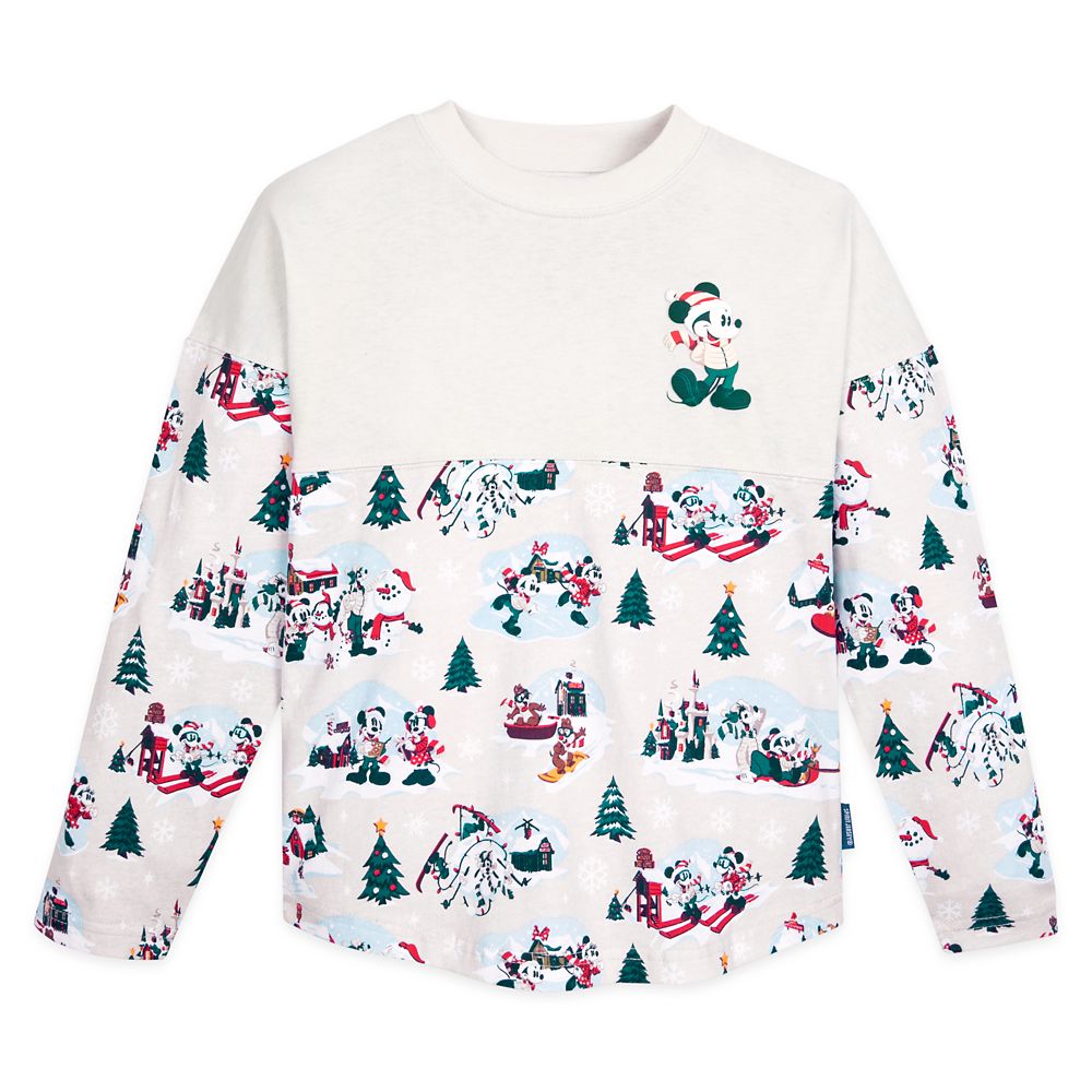 Show some holiday spirit in this festive Spirit Jersey with its puffy Disneyland Resort logo on the back shoulder. A wintry print featuring Mickey and the gang inspires goodwill and cheer throughout a season of celebrations.