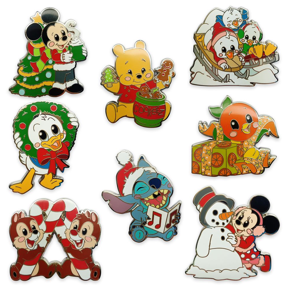 - Each pin in this series features holiday-themed Disney Cutie, including: Mickey Mouse, Minnie Mouse, Chip ‘n Dale, Donald Duck, Donald’s Nephews (Huey, Dewey and Louie), Stitch, Winnie the Pooh, and the Orange Bird*