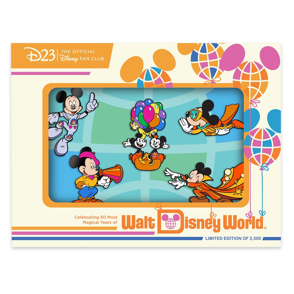 - Fourth and final set in a series of four D23-exclusive pin sets celebrating 50 years of the Walt Disney World Resort, opened October 1, 1971