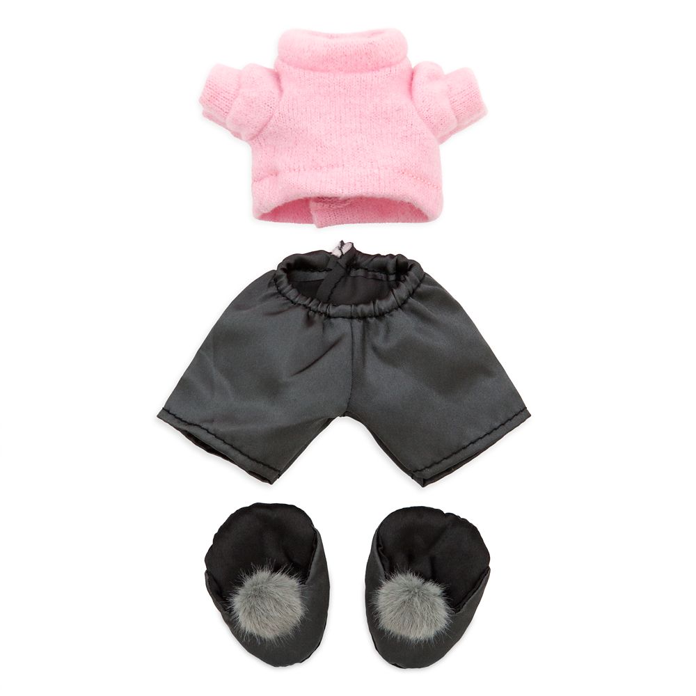 Your Disney nuiMOs plush will be fashionably festive in this fun outfit from the Holiday Collection. The set includes a pink knitted top which contrasts with the dark gray pants and matching shoes, which are accented with fluffy poms!