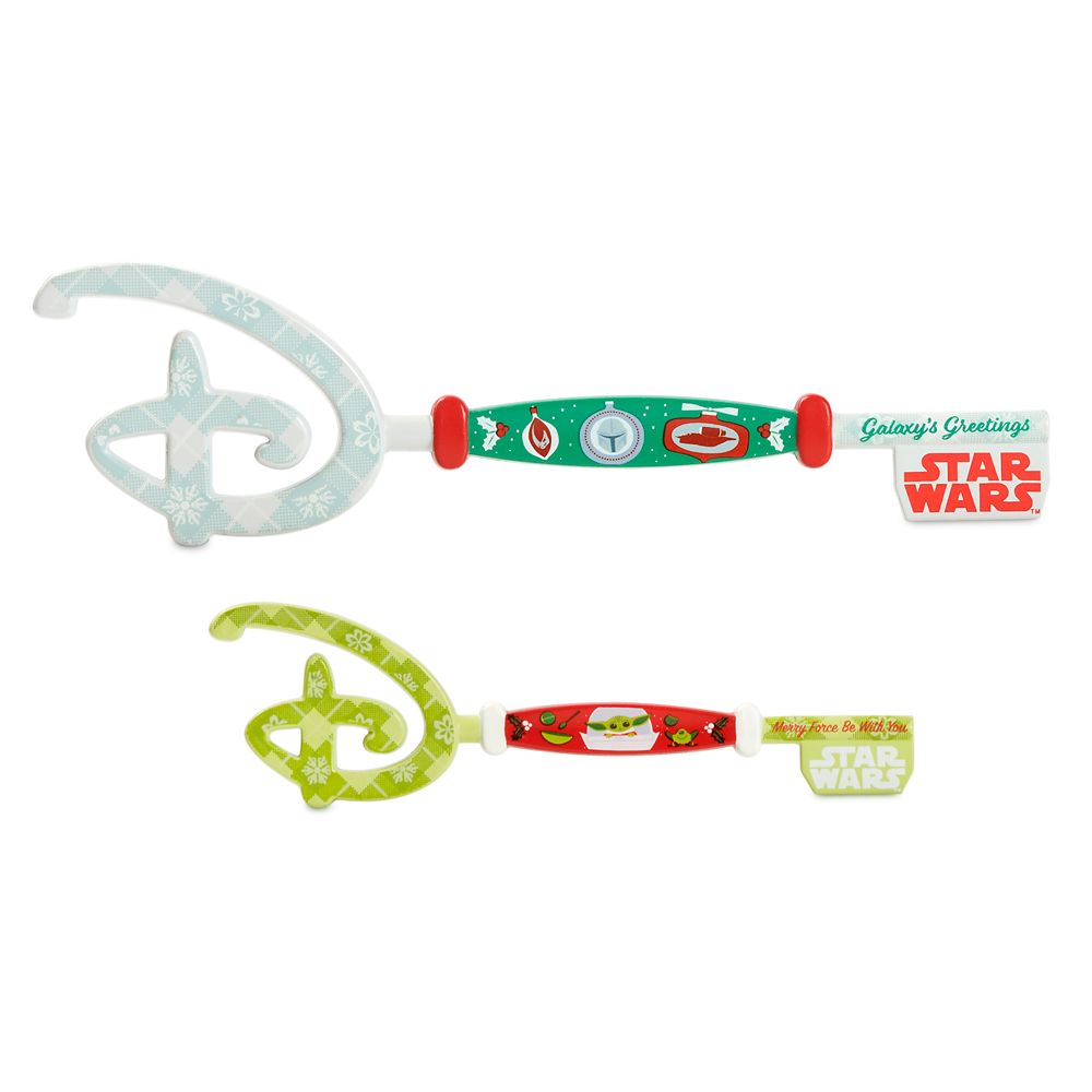 Unlock the magic of the holidays with this collectible set featuring keys themed to The Mandalorian and Grogu, the Child. The festive designs celebrate ”Galaxy’s Greetings” and ”Happy Force Be With You” and are presented in a seasonal Star Wars display box.
