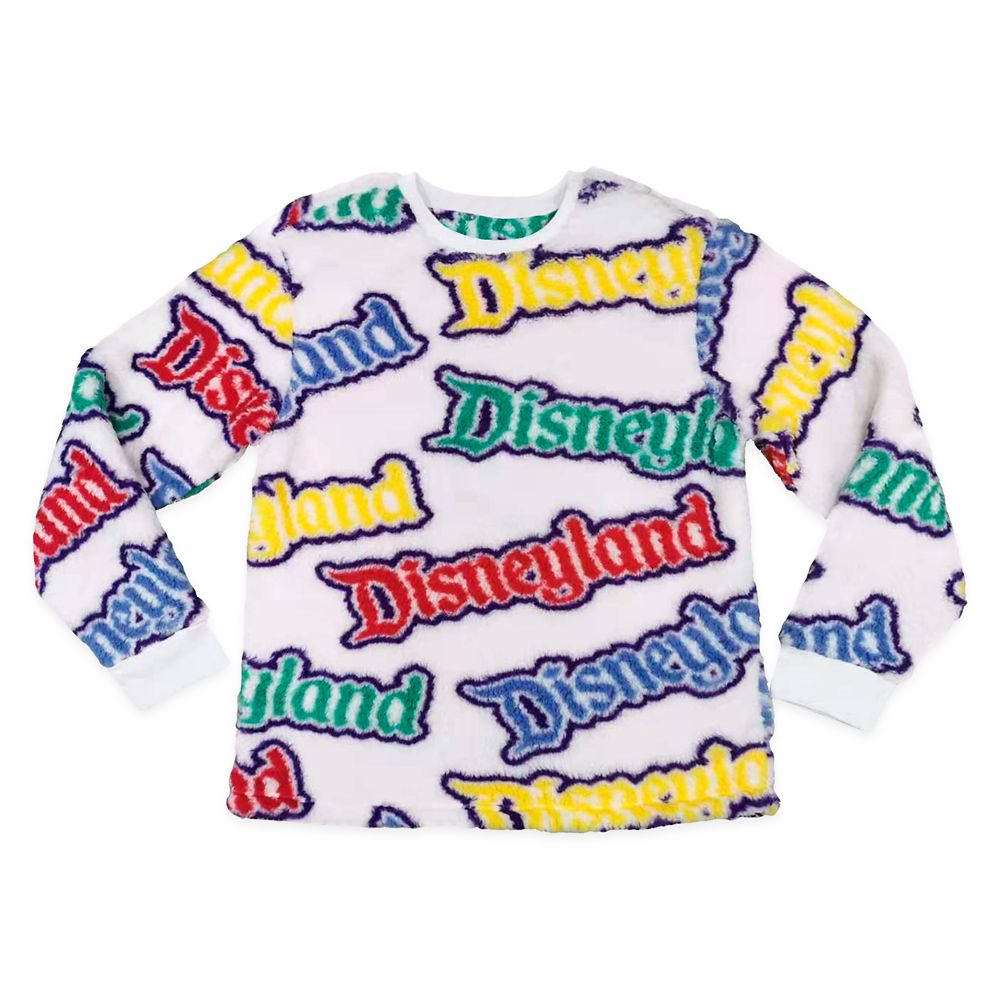Escape the winter weather to The Happiest Place on Earth in this long sleeve furry fleece pullover featuring allover Disneyland logo print pattern.