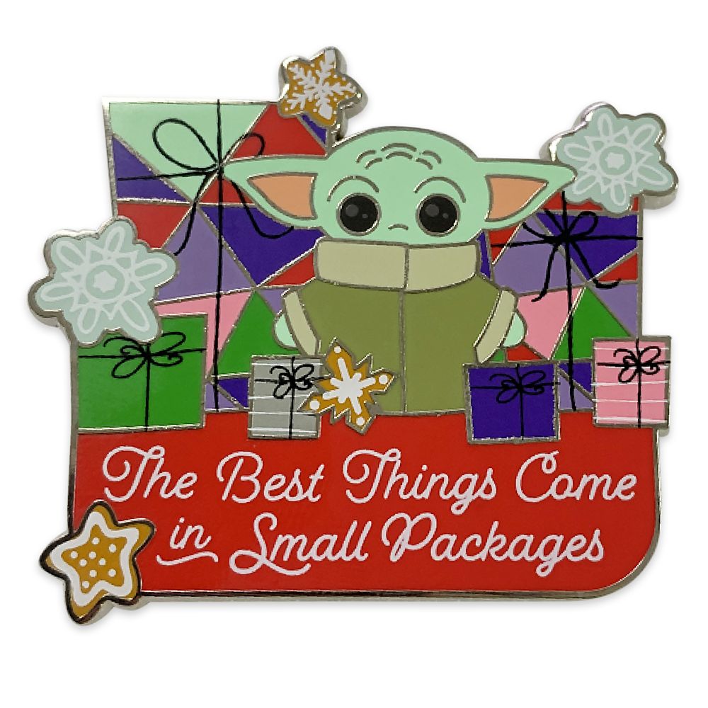 Grogu proves ”the best things come in small packages” on this silvery cloisonné Star Wars pin that will make a stellar holiday stocking stuffer.