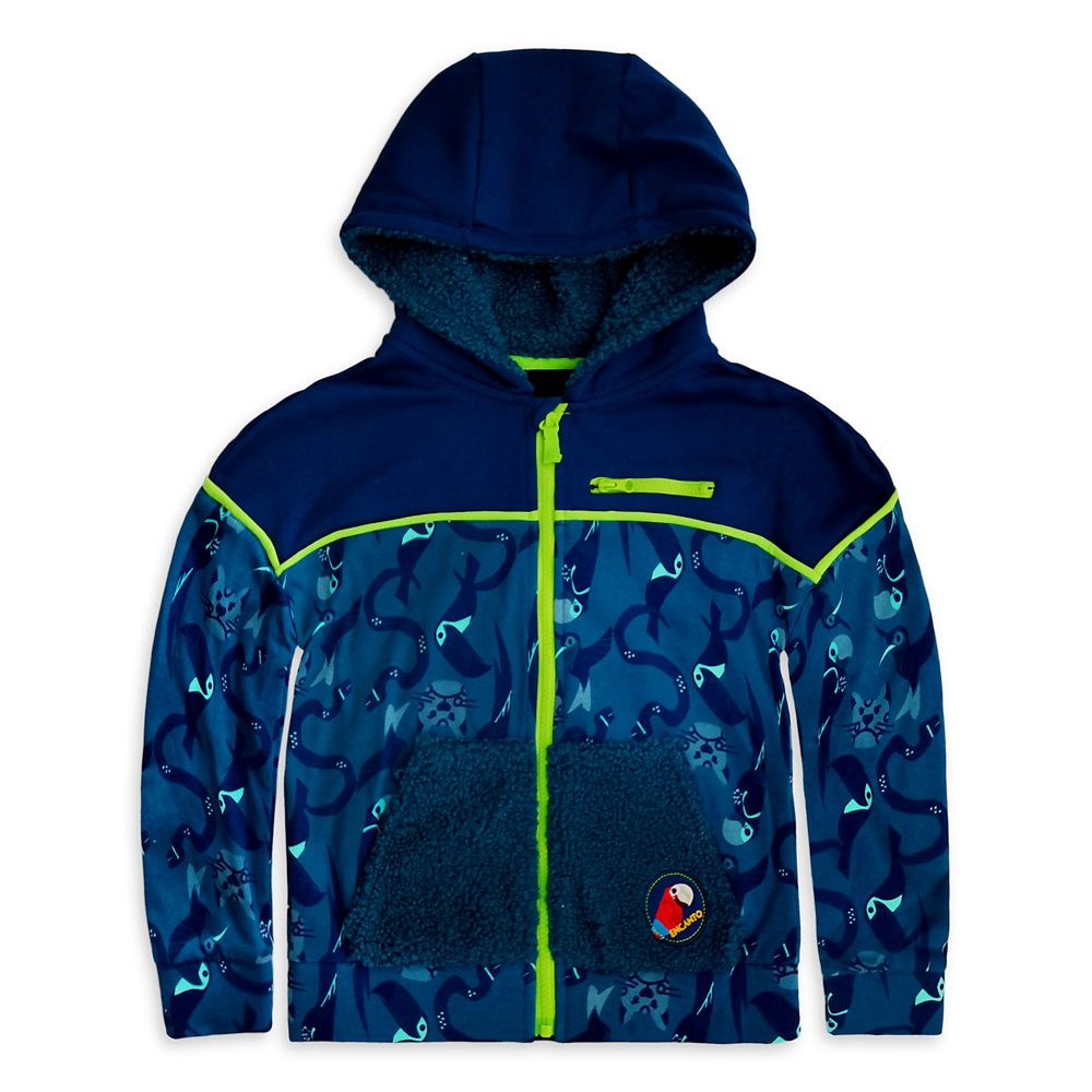 Warmest memories of Disney’s Encanto will enchant their day whenever they wear this cozy hooded jacket. A wild pattern of animals covers the body and neon green trim adds contrast to the monochromatic design, which includes pouch pockets and a solid yoke.