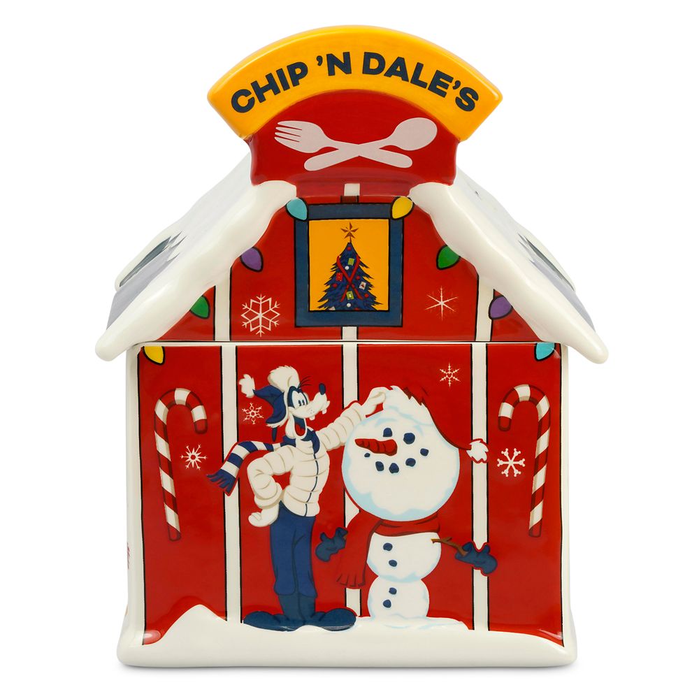 Welcome to Chip ‘n Dale’s! This little red holiday house is open for business and ready to hold you favorite cookies. Mickey and the gang appear among the snowy sides and festive decorations that make this cookie jar the centerpiece of your seasonal kitchen décor.