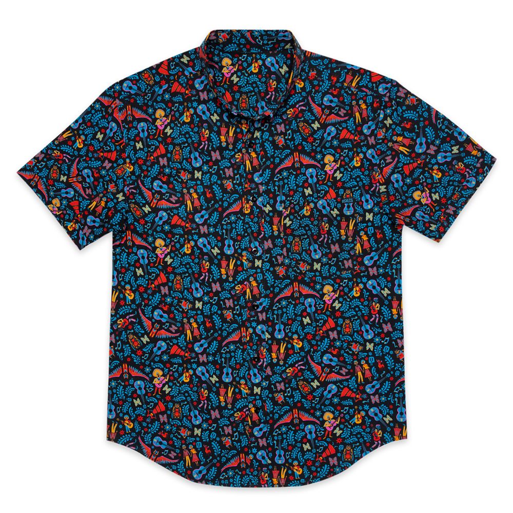Filled with music notes, guitars, calaveras, little Ernestos, little Héctors, little Imeldas, and more, just slipping on this soft and stretchy KUNUFLEX button down shirt will make you remember your favorite moments from Disney and Pixar’s Coco.