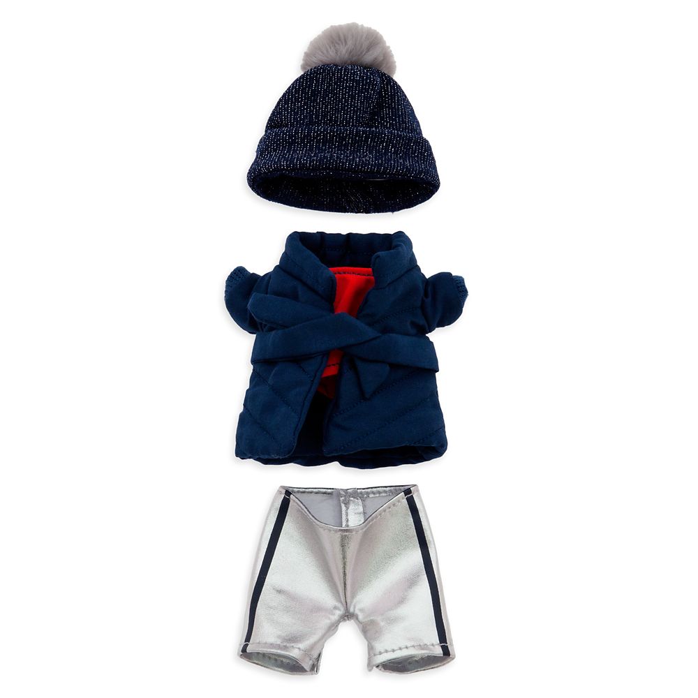 Your Disney nuiMOs plush can bundle up for their next adventure with this stylish outfit from our Travel Collection. The blue puffer jacket is combined with a bold red shirt, silver pants, and beanie with pom in this wintry ensemble that will keep them warm and looking cool.