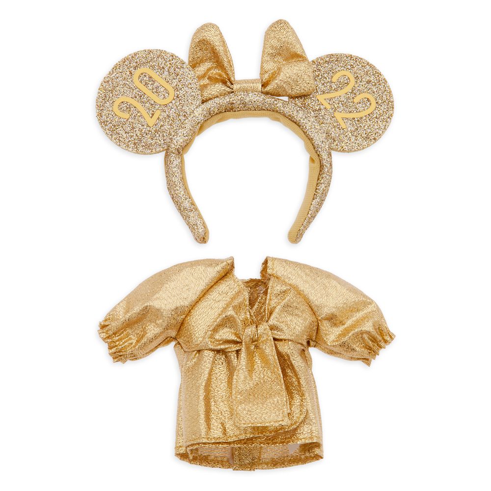 Get 2022 off to a golden start for your Disney nuiMOs plush with this outfit from our New Year’s Eve Collection. The gold metallic wrap dress is combined with a gold ear headband with ”2022” on the ears to make it a year to remember.