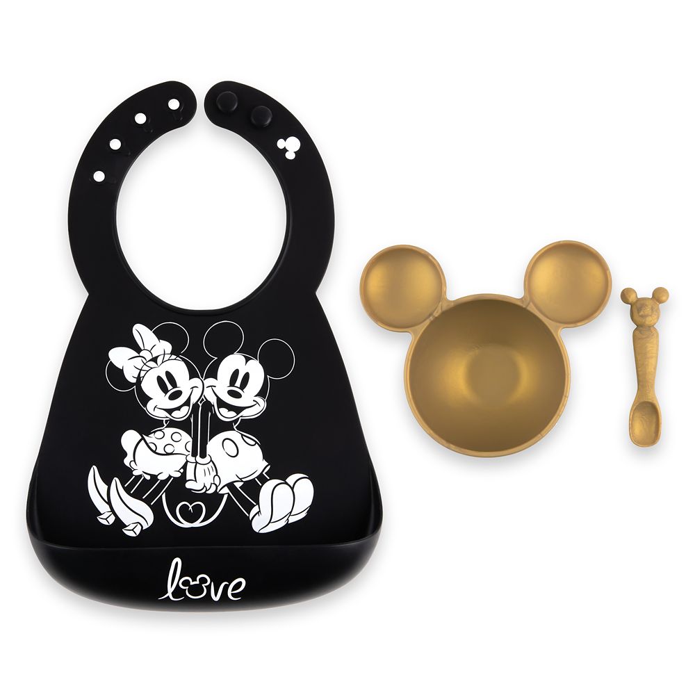 Meal times are always more fun in the company of Mickey and Minnie. This special Bumkins gift set includes the sweetheart couple on the clip-on bib with a handy catch-all pocket to prevent any mess. That is complemented by the coordinating goldtone silicone bowl with matching spoon.