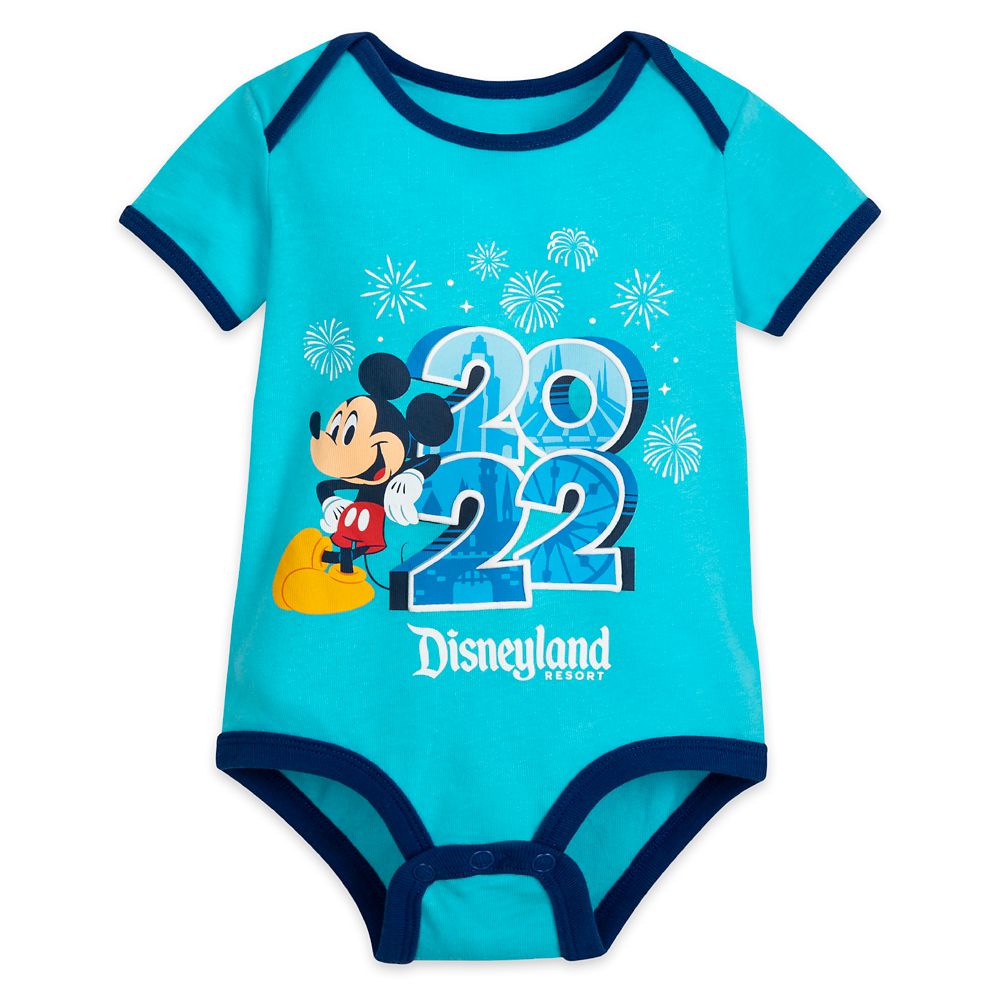 Baby will dream of a first trip to The Happiest Place on Earth in this all-cotton bodysuit featuring Mickey Mouse, Disneyland Resort icons and 2022 Logo.