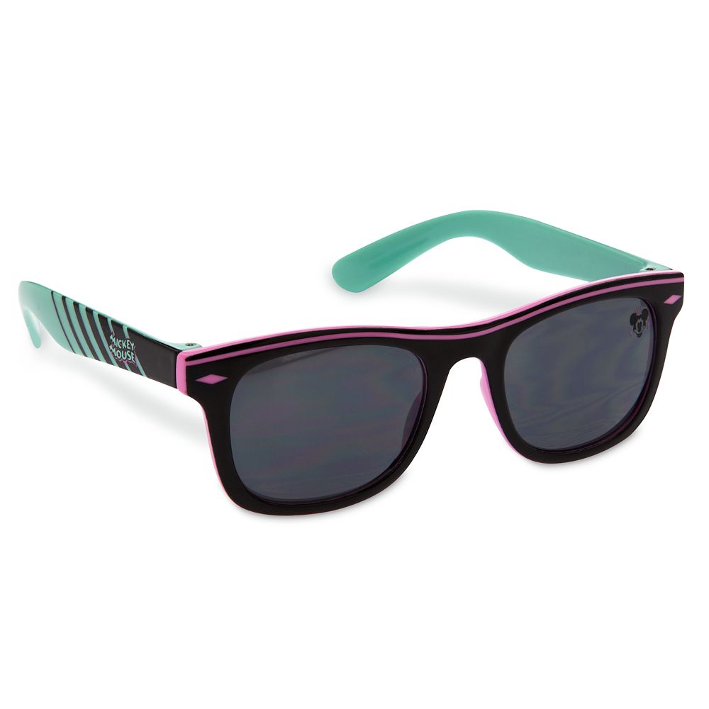Mickey Mouse brings his swell style to these cool sunglasses featuring a retro-’80s design. They offer 100% UVA and UVB protection for endless fun on sunny days.