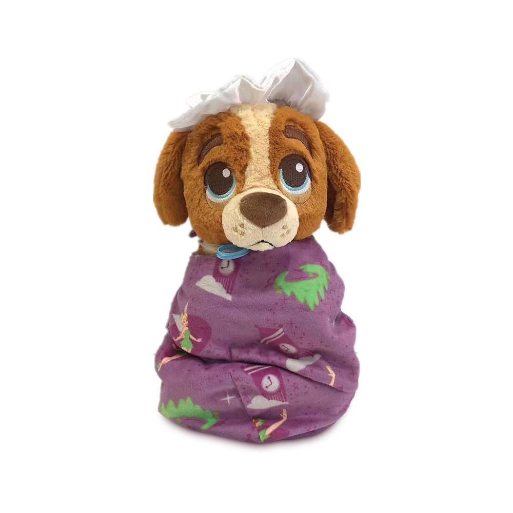 We’ll all need a dog as a nursemaid with our darling Disney Babies Nana plush. This furry, St. Bernard pup with cap is all wrapped-up in an illustrated soft pouch blanket with self-stick fabric clasp.