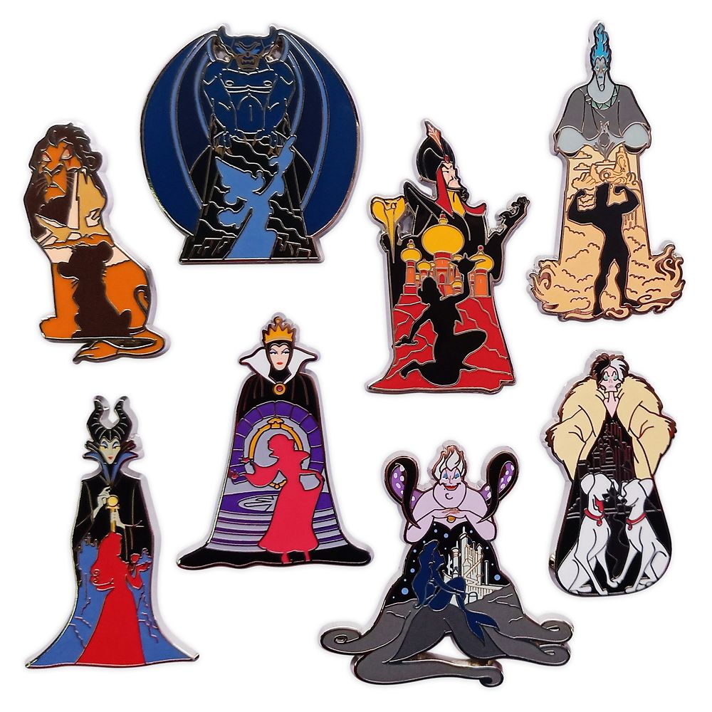- Pins approx. 1 1/2” H (Chernobog, Scar), 1 3/4” H (Evil Queen, Maleficent, Cruella, Ursula, Jafar), 2” H (Hades)