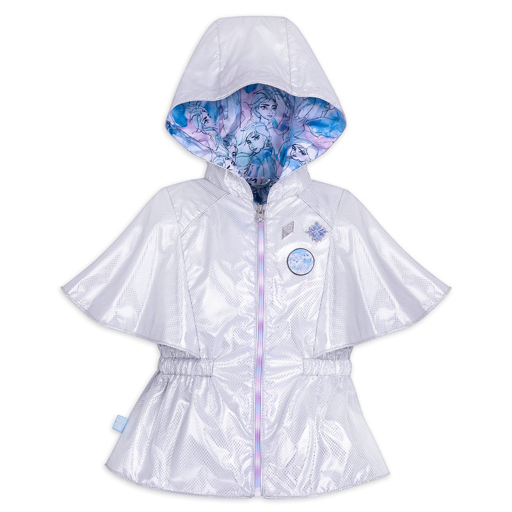 Frozen days are more fashionable in this metallic hooded jacket with Anna & Elsa appliqués and print lining. Unique poncho style sleeves and cinched waistline make it too cool for school.